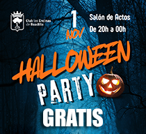 ¡Vive el mejor Halloween en el Club el próximo 1 de noviembre!. Disfrutaremos de una noche súper divertida y terrorífica con picoteo, bebidas y actividades en familia. Os esperamos en el Salón de Actos de 20:00h a 00:00h. ¡Apúntate AQUÍ!. GRATIS para SOCIOS. Invitados 10€.